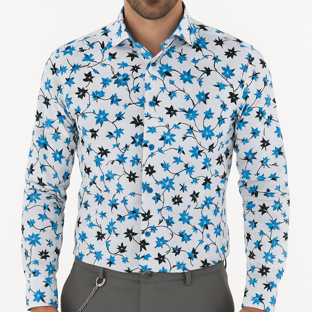 Cette chemise homme Roberto, à la coupe slim fit, allie élégance et modernité. Son motif floral délicat sur fond blanc apporte une touche raffinée et contemporaine, idéale pour un look soigné en toute occasion. Conçue pour épouser parfaitement la silhouette, elle offre un confort optimal tout en valorisant la tenue. Parfaite pour les amateurs de style affirmé et sophistiqué.